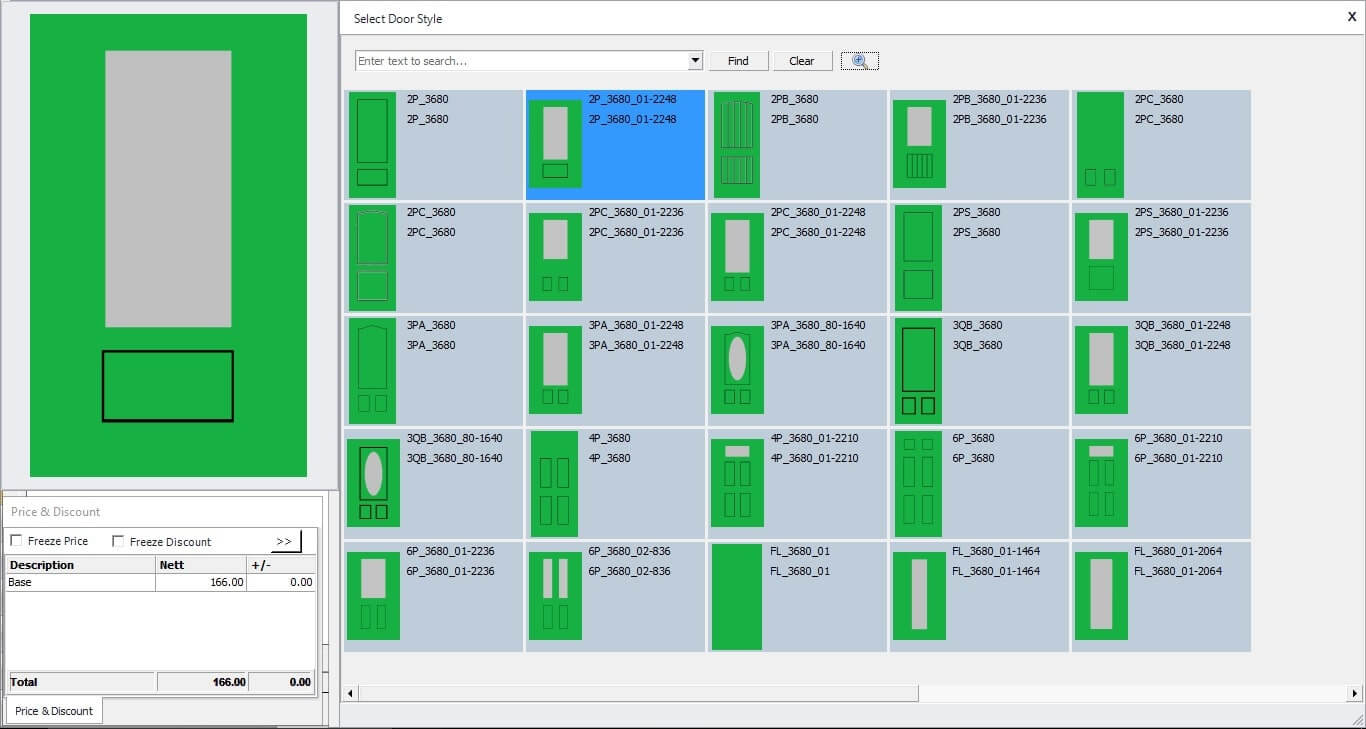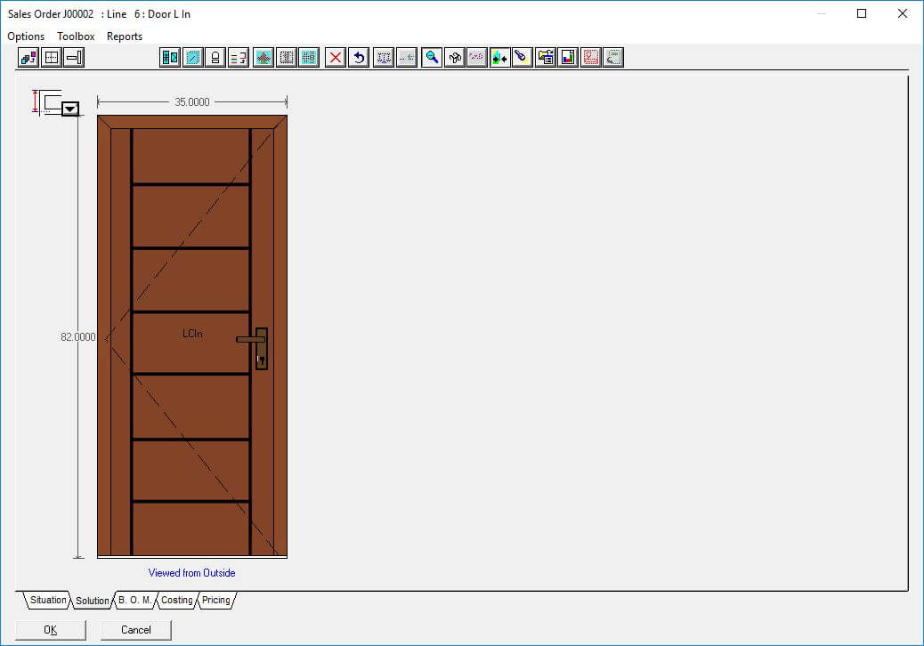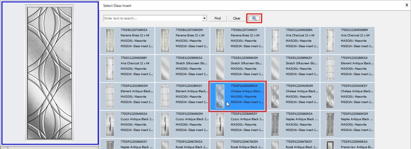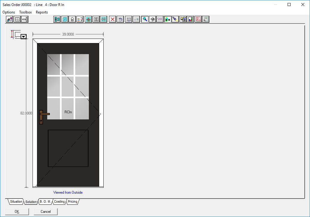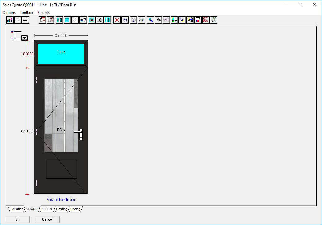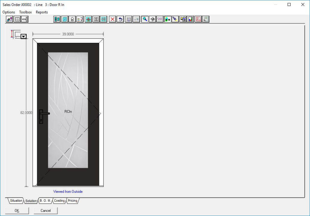 The Door slabs and glass inserts option in Windowmaker software allows you to configure complex entrance door designs with different styles and slabs for the door as well as sidelights. Using this option, you can select the supplier slab and glass insert ecatalog to use and plug it with the data easily.