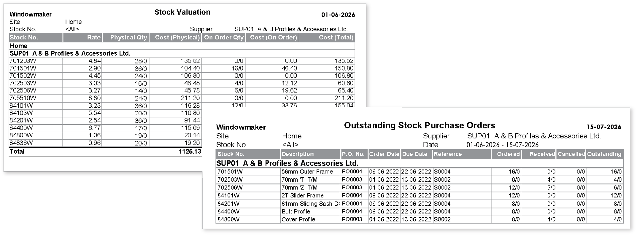 The Windowmaker Stock Control module enables you to know what, where and how much inventory is on-hand, ordered and allocated.  This helps with all activities surrounding effective sourcing, forecasting and replenishment of the inventory. It also minimises holding, replacement and shortage costs of inventories and maximises the efficiency in production and delivery. Let Windowmaker take control of your inventory and give you peace of mind.