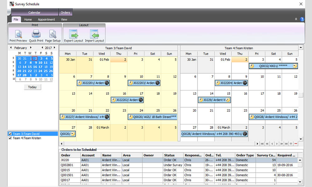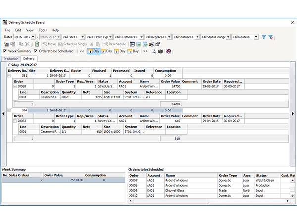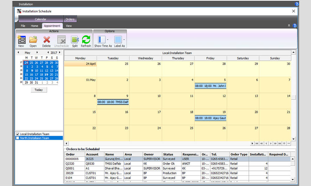 • Windowmaker Scheduling enables you to take full control over all the operations – Survey, Purchase, Production, Delivery and Installation – by maintaining compatible schedules for each.
