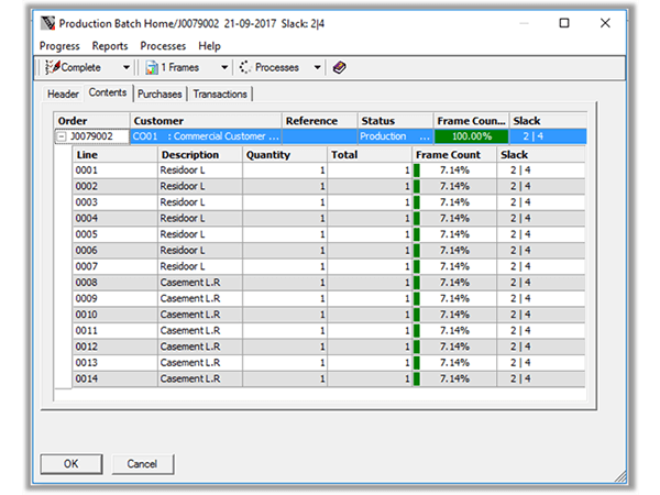 • Bought-to-Order components, either for individual Sales Order or a Production Batch (e.g. glass units, frames)